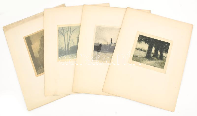 4 db részben jelzett vintage fotóművészeti alkotás az 1920-as évekből, kiállatásra előkészített, vagy kiállítási anyag. Kb 12x10 cm Paszpartukban