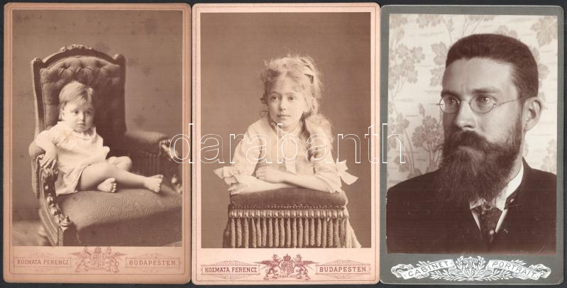 6 db szép állapotú kabinetfotó: Kozmata, Kozics, Divald Károly műterme...