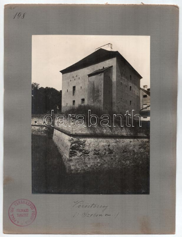 cca 1910-1920 Vöröstorony (Turnu Rosu), Szeben vármegye, Erdély, nagyméretű, kartonra kasírozott fotó, feliratozva, intézményi bélyegzőkkel, 23x17 cm