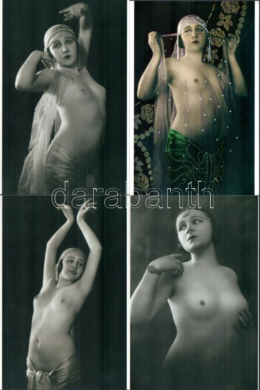 Description: cca 1929 Demeter Károly (1892-1983) budapesti fényképész és fotóművész aktfotó gyűjteményéből 4 db modern nagyítás ugyanarról a modellről, jelzés nélkül, 15x10 cm