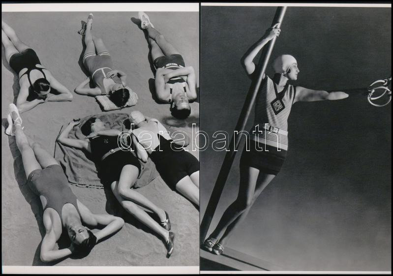 cca 1932 George Hoyningen Huene (1900-1968) divatfotós felvételei a sportruházatokról, 2 db modern nagyítás, jelzés nélkül, 21x15 cm