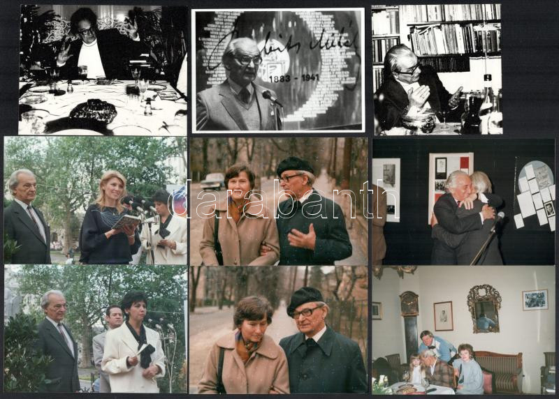 Description: cca 1975-1990 Keresztury Dezső (1904-1995) író, költő, korábbi vallás- és közoktatásügyi miniszterről készült össz. 15 db fotó, közte 2 db fotó 1987 Könyvhét (Bp.) és 1 db fotó Babits centenáriummal kapcsolatos, többen beazonosítandó személyekkel, jelzés nélkül, részben a hátoldalán feliratozott és datált, 9x9 és 14x9 cm közötti méretekben