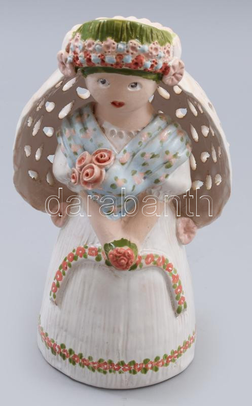 M. M. jelzéssel: Rimóci menyasszony, Mázas kerámia, kézzel festett, jelzett, hibátlan 23 cm