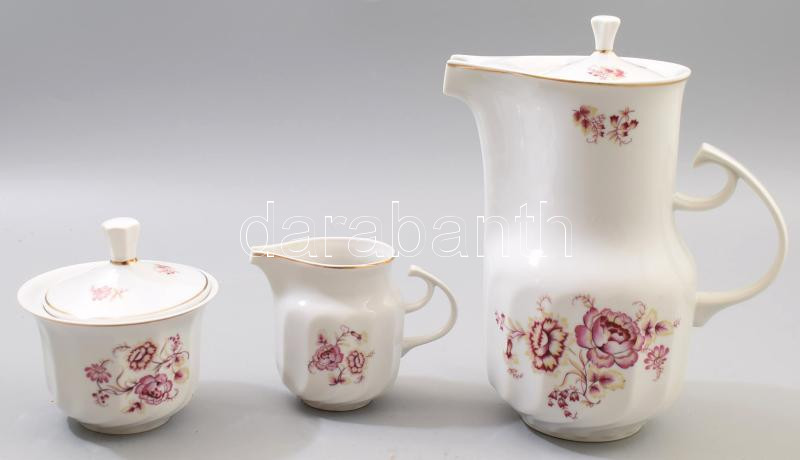 Hollóházi háromrészes szervírozó szett, tejkiöntő, kiöntő, cukortartó,...