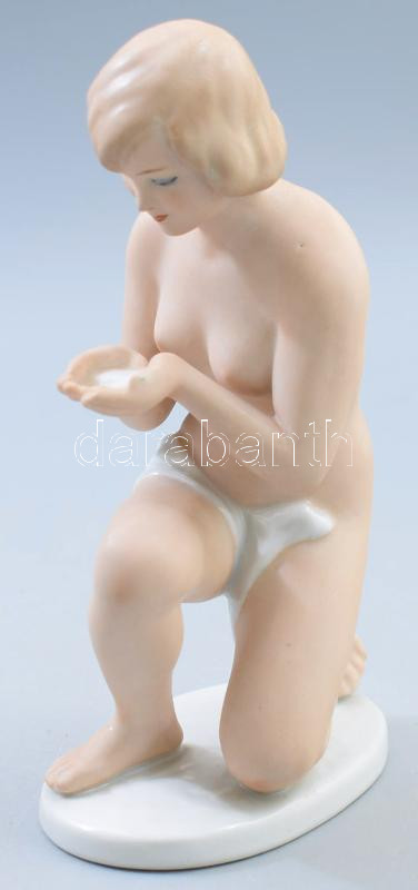 Wallendorf fürdőző női akt. Jelzett, mázas és biszkvit porcelán, jelzett, m: 19,5 cm.