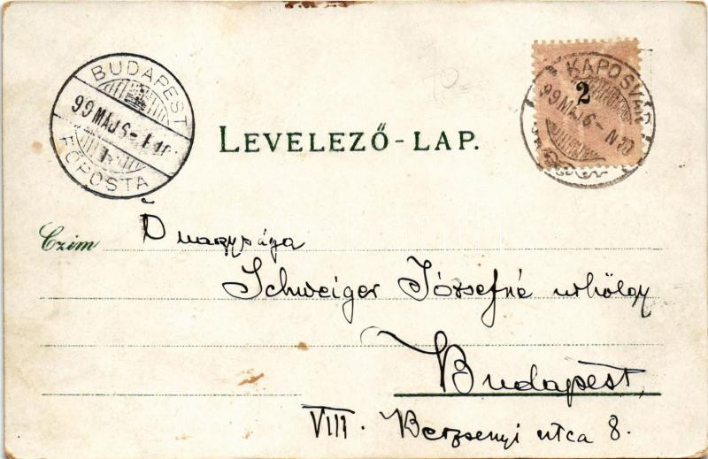 1899 (Vorläufer) Kaposvár, Római katolikus templom, cukorgyár, új állami főgimnázium. Gerő Zsigmond kiadása, Art Nouveau, floral litho