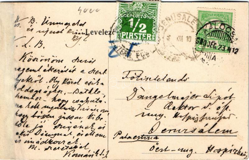 1910 Kalocsa, Jézus Társasági érseki Stephaneum fúvós zenekara - Dangelmayer Lipót rektornak küldve Jeruzsálembe (r)
