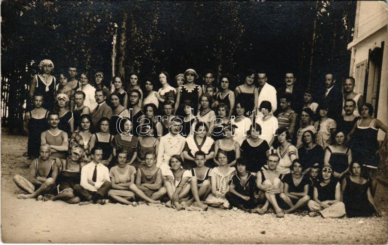 Balatonlelle, nyaralók csoportképe korabeli fürdőruhákban. Szitovszky ...