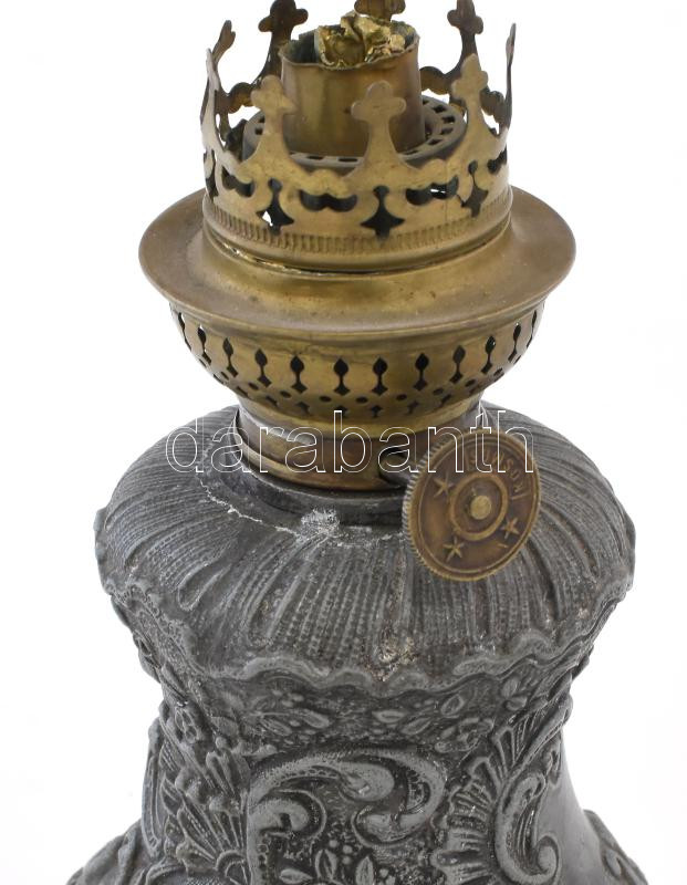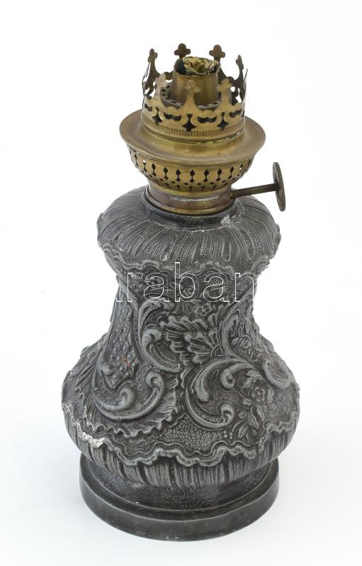 cca 1880, Barokk mintás petróleumlámpa test, m: 19 cm
