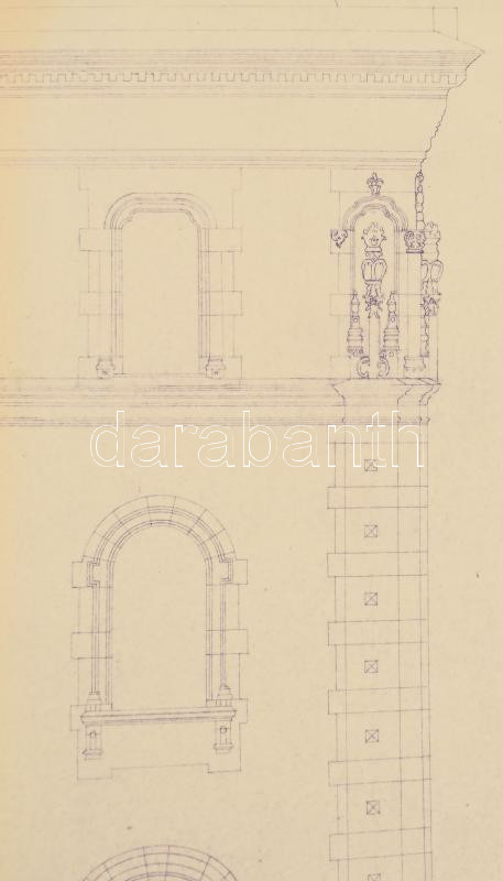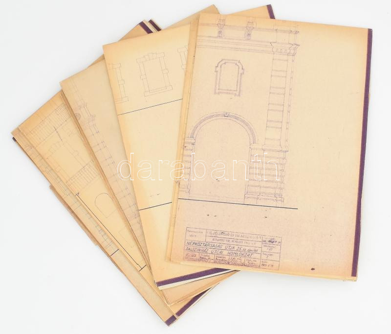 1969 Bp., az Állami Balettintézet (Drechsler-palota) épületének (VI., Népköztársaság útja [Andrássy út] 25., az Operával szemben) felújítási tervei, össz. 8 db nagyméretű tervrajz, az épület külső, ill. belső udvarra néző homlokzatainak vázlataival. Készítő: ÉM Földmérő és Talajvizsgáló Vállalat, méretarány: 1 : 50. Változó méretben (cca. 109x88 cm és 163x88 cm között) és állapotban, mappában.