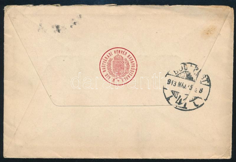 1913 M. Kir. Nagyváradi Honvéd Hadapródiskola címeres borítékja, Kruzs...