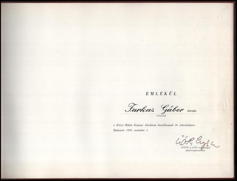 1970 Zrínyi Miklós Katonai Akadémia 1950-1970. Névre szóló emlékalbum ... https://www.darabanth.com/en/481-Online-auction/481.0/Art-and-other-collectibles/Military~2000009/1970-Zrinyi-Miklos-Katonai-Akademia-1950-1970-Nevre-szolo-emlekalbum-Farkas-Gabor-ezredes~II3288365