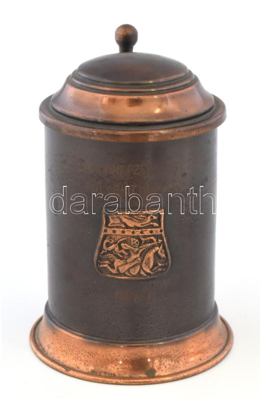 1984 Réz fedeles korsó, "A Harckiképzési Osztály kollektívájától" felirattal, m: 14,5 cm