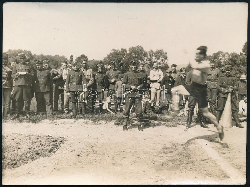 cca 1925 Távolugró ugrás közben egy katonai sporteseményen főleg katon...