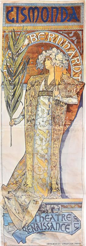 Mucha Gismonda Bernhadt plakát, modern nyomat, hajtott, 96×34 cm
