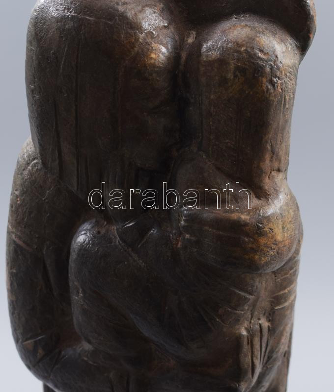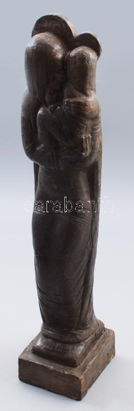 Kerényi Jenő (1908-1975): Mária a kisdeddel. cca 1940, mázas terrakotta, jelzett, kis sérülésekkel, m: 38 cm