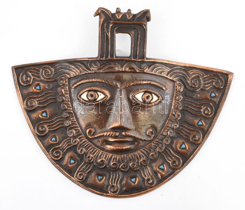 Kótai József (1940- ): Agamemnon. Zománcozott réz plakett, jelzett, hi...