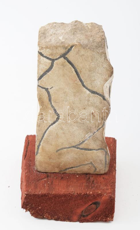 Nagy Sándor (1923-2017): Akt. Faragott és vésett kő, fa talapzaton, jelzés nélkül, teljes m: 20,5 cm