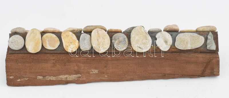 Nagy Sándor (1923-2017): Noé bárkája. Faragott kőcsoport, vas és fa apllikáción, jelzés nélkül, h: 40 cm