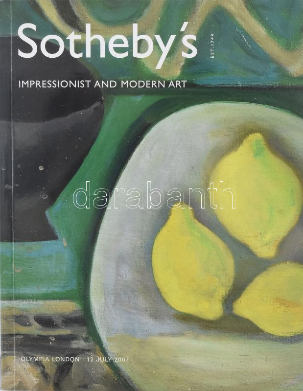 Sotheby's modern és impresszionista művészeti árverésének katalógusa, ... https://www.darabanth.com/en/481-Online-auction/481.0/Books/Books-Architecture-Art~2000023/Sothebys-modern-es-impresszionista-muveszeti-arveresenek-katalogusa-2007-Angol-nyelven-328-p~II3283937