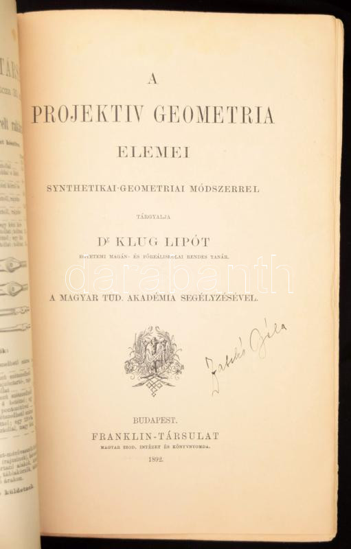 Dr. Klug Lipót:A projektív geometria elemei Bp., 1892 Franklin-Társula... https://www.darabanth.com/en/481-Online-auction/481.0/Books/Books-Natural-sciences-Medicine~2000026/Dr-Klug-Lipot-A-projektiv-geometria-elemei-Bp-1892-Franklin-Tarsulat-272p-Kiadoi~II3287788