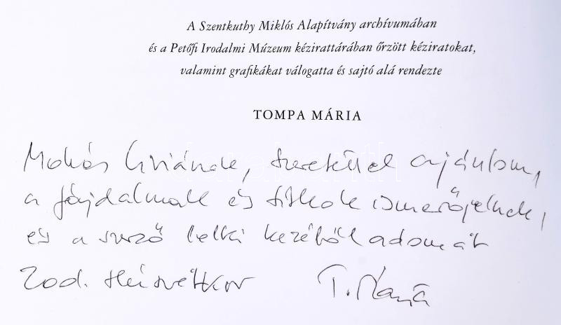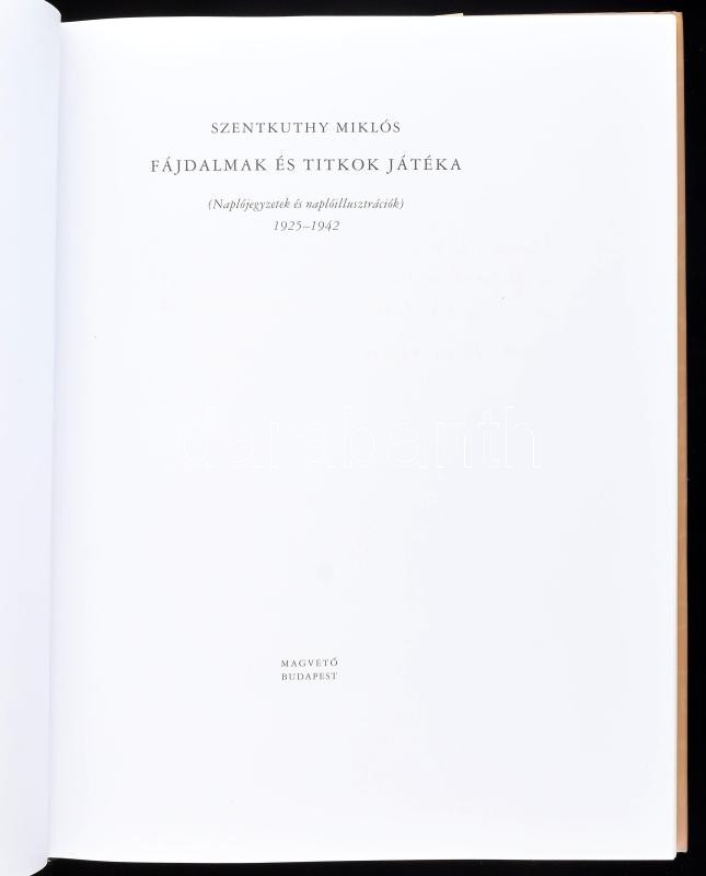 Szentkuthy Miklós: Fájdalmak és titkok játéka. (Naplójegyzetek és naplóillusztrációk) 1925-1942. Válogatta, és sajtó alá rendezte: Tompa Mária. A szerkesztő, a Szentkuthy-hagyaték kezelője, Tompa Mária (1936- ) által Mohás Lívia (1928-2024) pszichológus, József Attila-díjas írónak DEDIKÁLT példány, dátumozott példány. Bp.,2001., Magvető. Első kiadás. Kiadói papírkötés, kiadói papír védőborítóban.