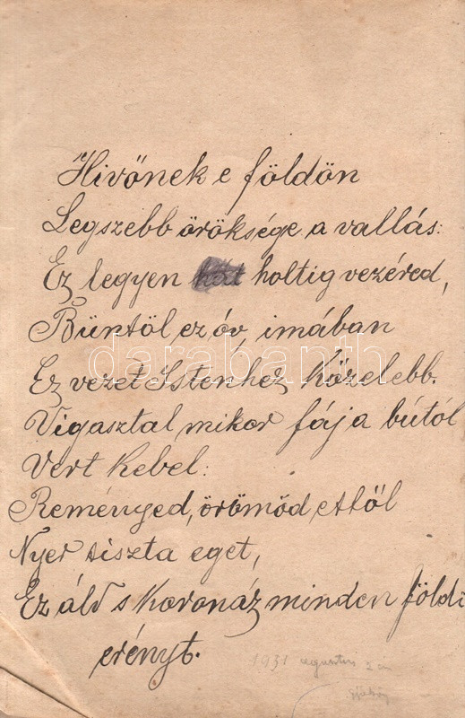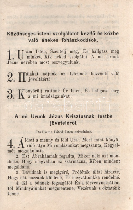 Keresztyén énekes könyv. A Dunántúli Ágostai Hitvallású Evang. Egyházkerület tulajdona. Legújabb kiadás, mely a nevezett egyházkerület határozatából szükséges igazításokkal újra szerkesztetett. Magyar-Óvár, 1904. Czéh Sándor-féle Könyvnyomda. 540 + [2] p. A kötet elejébe helyezve az egykori tulajdonos fiának születési anyakönyvi kivonata. Poss.: Nagy Jenő ev. tanító, 1905. nov. hó. Kiadói, díszesen aranyozott, vaknyomásos, enyhén kopott egészbőr kötésben, jó példány. Rendkívül ritka kiadás, az általunk hozzáférhető könyvészetekben nem fellehető.