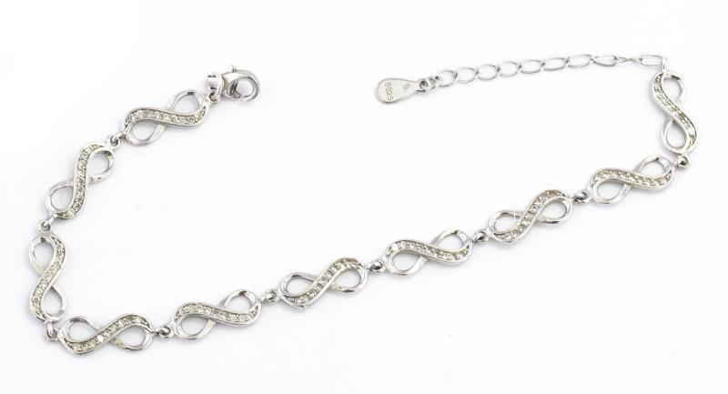 Ezüst (Ag) végtelen mintás karkötő, jelzett, h: 17-20 cm, nettó: 4,5 g