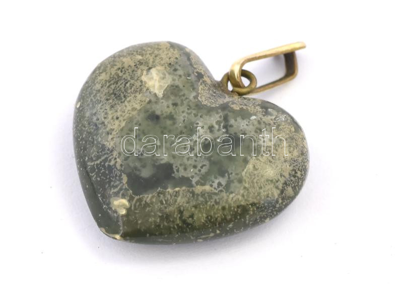 Szerpentin szív alakú medál, dublé arany szerelékkel 22x20 mm