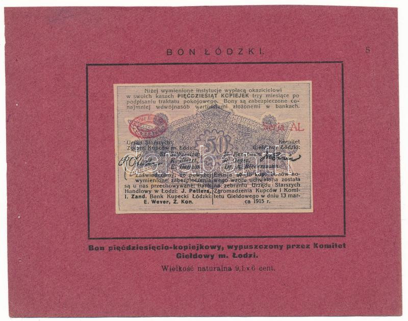 Lengyelország / Lódz 1915. 50k szükségpénz kartonlapra ragasztva T:AU, ragasztás elengedett, tűzőgéplyukak a kartonon