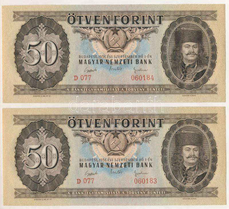 1951. 50Ft (2x) sorszámkövetők "D 077 060183 - D 077 060184" T:UNC