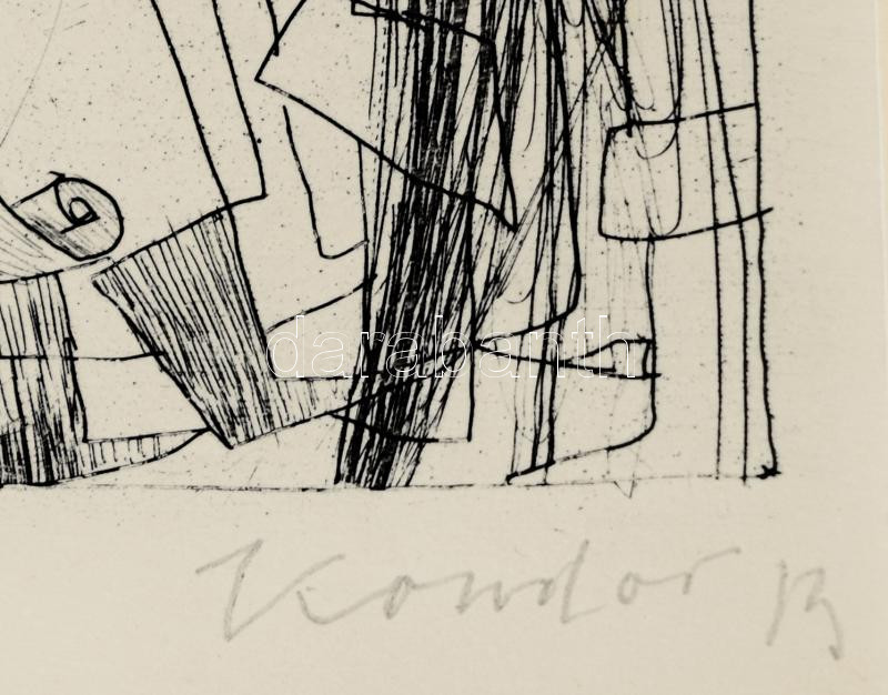 Kondor Béla (1931-1972): Illusztráció (Vélez de Guevara: A sánta ördög c. kötethez). Rézkarc, papír, utólagos jelzéssel, üvegezett fakeretben, 11×8 cm