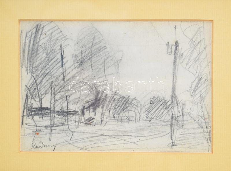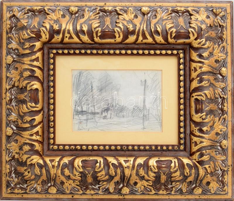 Rudnay Gyula (1878-1957): Táj. Ceruza, papír, jelzett. Dekoratív, üveg...