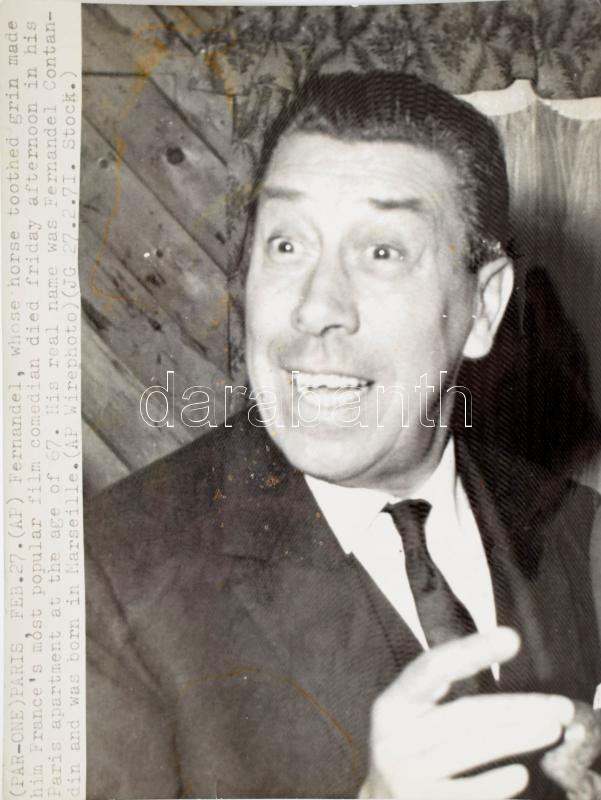 1971 Meghalt Fernandel francia színész, MTI sajtófotó, hátoldalon feli...