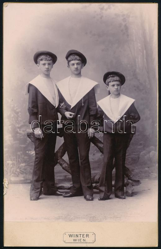 cca 1900-1910 Matrózruhás fiúk, kabinetfotó Winter bécsi műterméből, s...