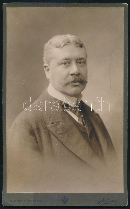cca 1910-1915 Popovics Sándor (1862-1935) politikus, felsőházi tag, belső titkos tanácsos, pénzügyminiszter (1918. február-október), a Magyar Nemzeti Bank első elnöke, az MTA tagja; kabinetfotó Pietzner cs. és kir. udvari fényképész műterméből, kissé foltos, 22x13,5 cm