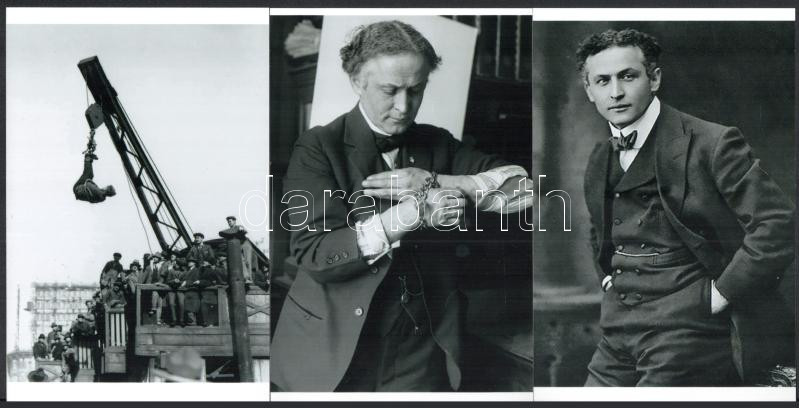 cca 1910 Houdini, Harry (korábban Weisz Erik), Budapesten született 1873-ban, Detroitban hunyt el 1926-ban; magyar származású, amerikai illuzionista, bűvész, szabaduló művész, 5 db modern nagyítás, jelzés nélkül, 15x21 cm és 15x10 cm
