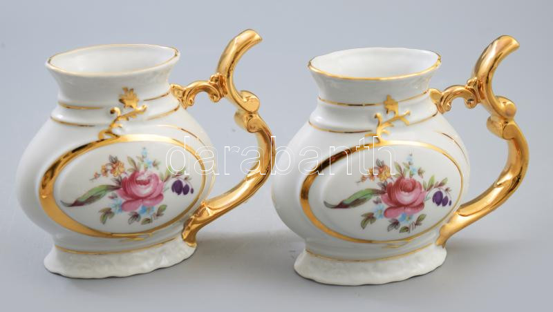 2 db antik Karlovy Vary gyógyvíz ivó porcelán bögre, matricás, jelzett, hibátlan 16x11 cm