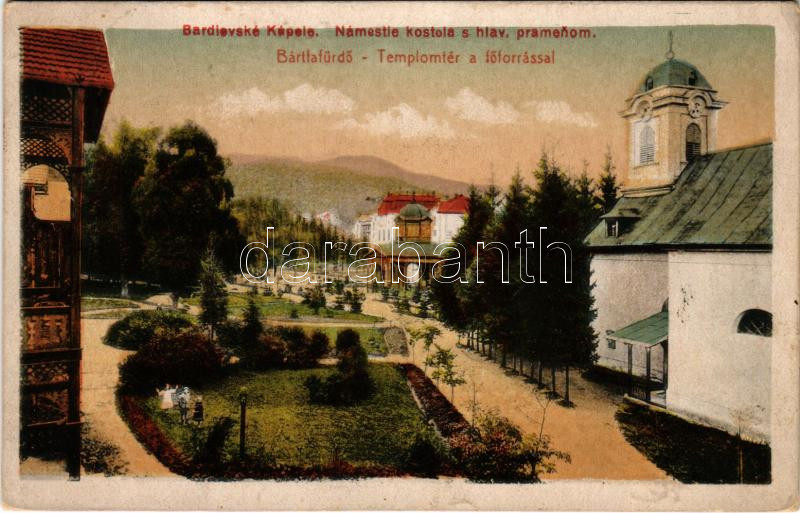 Bártfafürdő, Bardejovské Kúpele, Bardiov, Bardejov; Templom tér a főfo... https://www.darabanth.com/en/481-Online-auction/481.0/Postcards/Slovakia~1000012/Bartfafurdo-Bardejovske-Kupele-Bardiov-Bardejov-Templom-ter-a-foforrassal-Eschwig-es-Hajts~II3287983