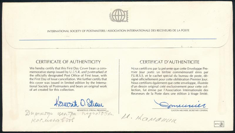 Nyikolaj Kamanyin (1908-1982) szovjet pilóta, űrhajóskiképző aláírása hitelesített emlékborítékon /