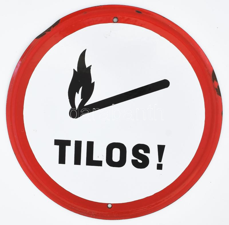 Nyílt láng tilos zománcozott fém tábla d: 26 cm