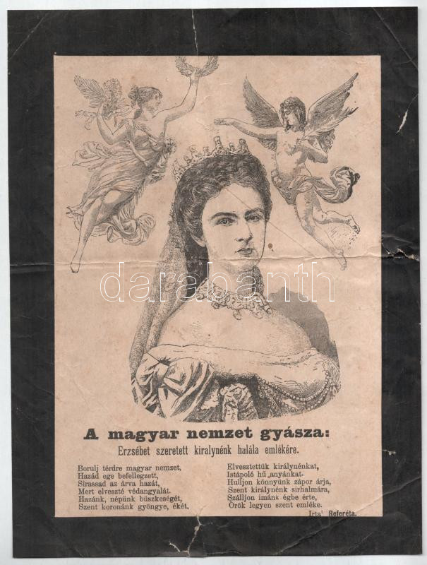 1898 ,,A magyar nemzet gyásza: Erzsébet szeretett királynénk halála el... https://www.darabanth.com/en/482-Online-auction/482.0/Art-and-other-collectibles/Historical-documents-manuscripts~1500021/1898-A-magyar-nemzet-gyasza-Erzsebet-szeretett-kiralynenk-halala-elmekere-Sisi-halalanak~II3293704