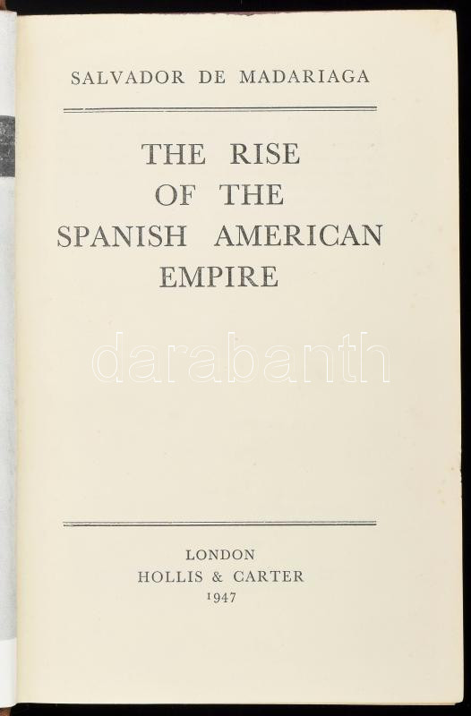 Salvador de Madariaga: The Rise of the Spanish American Empire. London... https://www.darabanth.com/en/482-Online-auction/482.0/Books/Books-History~500019/Salvador-de-Madariaga-The-Rise-of-the-Spanish-American-Empire-London-1947-Hollis-Carter~II3292722