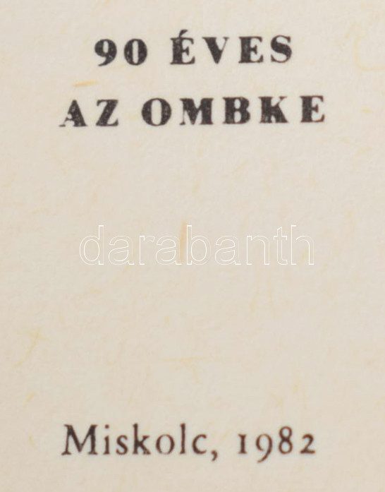 Tóth Pál: 90 éves az OMBKE. Miskolc 1982. Mini plakett a könyv elején Minikönyv, egészvászon kötésben, bőr plakettel sorszámozott 140/350