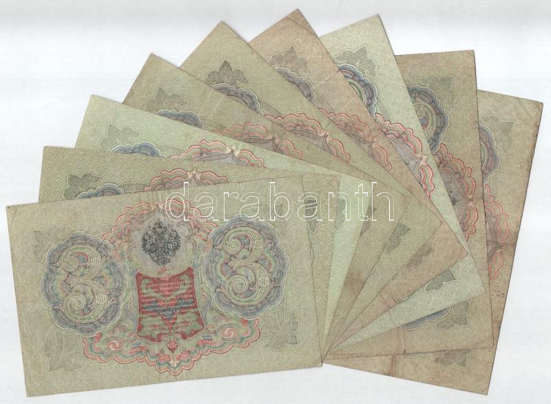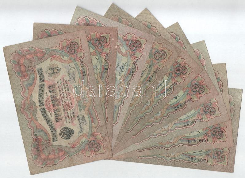 Orosz Birodalom 1914-1917. (1905) 3R (9xklf) mindegyik különböző pénzt... https://www.darabanth.com/en/482-Online-auction/482.0/Numismatics/Worldwide-banknotes~1000015/Orosz-Birodalom-1914-1917-1905-3R-9xklf-mindegyik-kulonbozo-penztaros-alairassal-Szign-~II3291488
