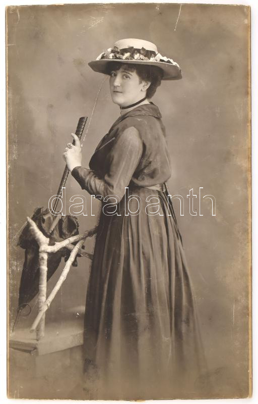 Description: cca 1910 Czullik Inez, Czullik Ágost, a Liechtenstein hercegi kertek igazgatója lányának fotója, keményhátú fotó Kürti D. Dezső soproni műterméből, körbevágott, 17x11 cm