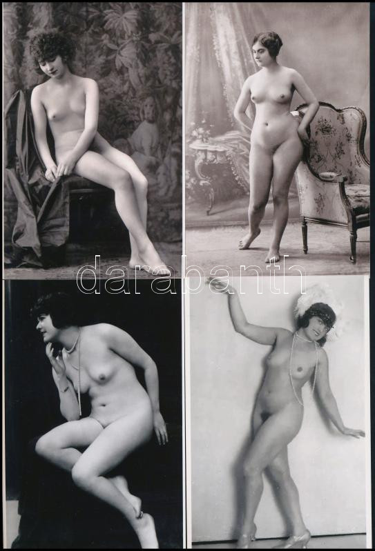cca 1929 Demeter Károly (1892-1983) budapesti fényképész és fotóművész aktfotó gyűjteményéből 4 db modern nagyítás, jelzés nélkül, 15x10 cm