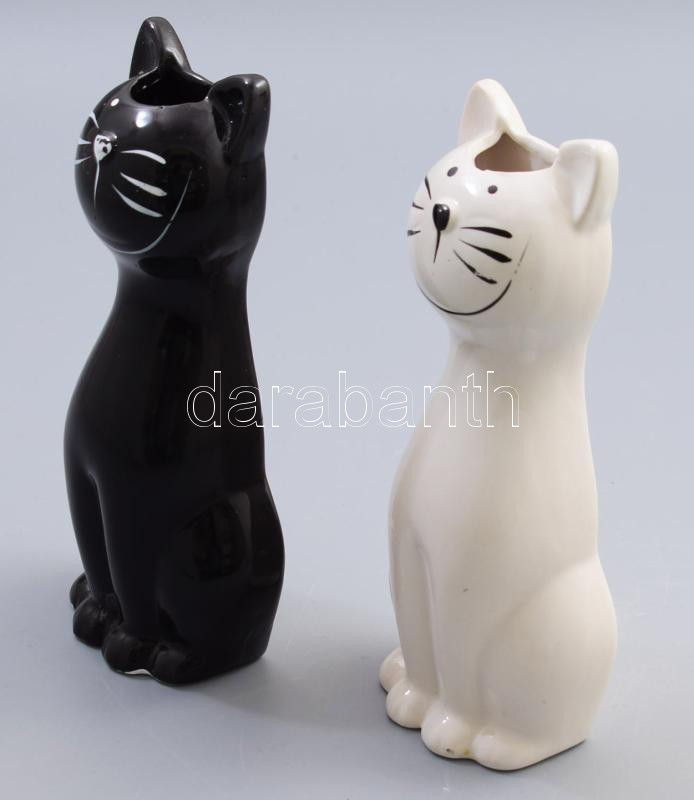 2 db kerámia fekete-fehér macska párologtató. 21 cm