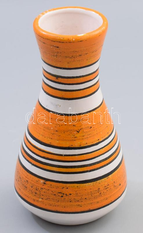 Kerezsi Gyöngyi narancs-fehér váza, jelzett, m: 19,5 cm