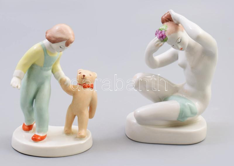 Aquincum női akt és plüssmackóval játszó gyermek, jelzett, hibátlan.